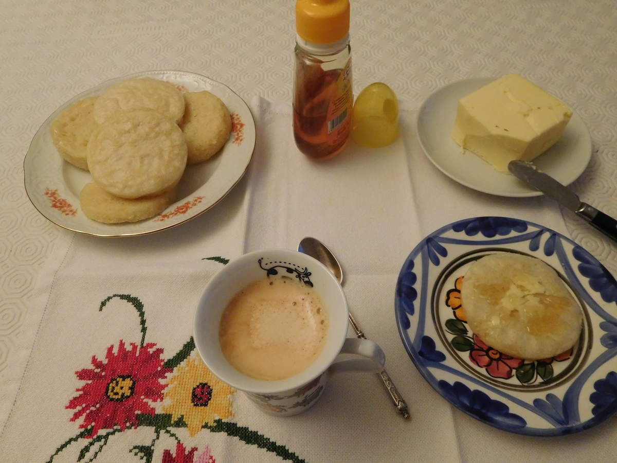Déposer sur une assiette et déguster tièdes, tartinés de beurre et de miel ou de confiture, en accompagnement de "a cup of tea" ! ou un café, ou un choc... ;-)