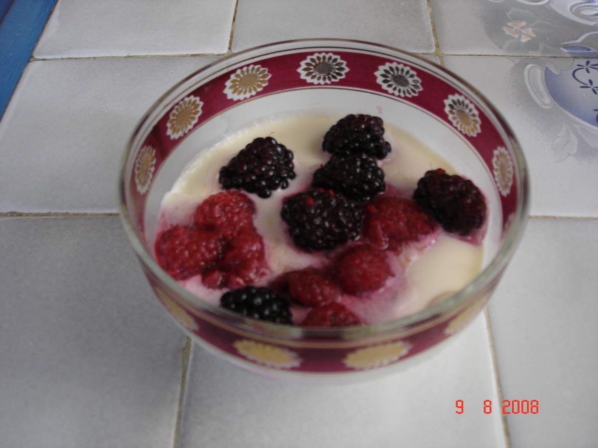 Une poêlée de fruits rouges sur une crème légèrement prise et bien froide.